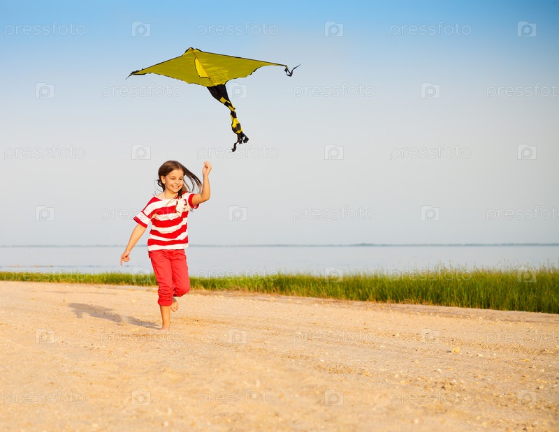 Девочка бежит с воздушным змеем