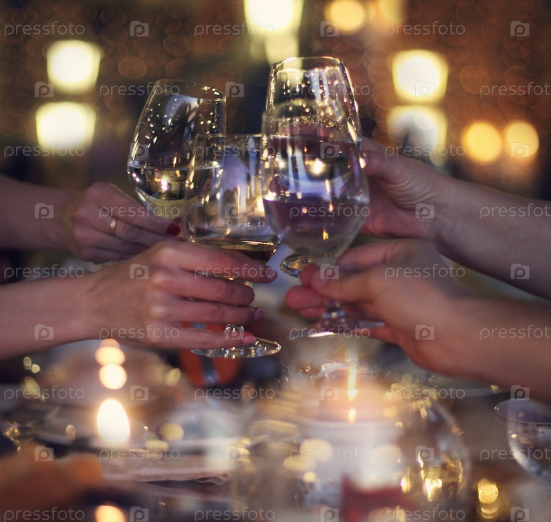 Тост с бокалами белого вина