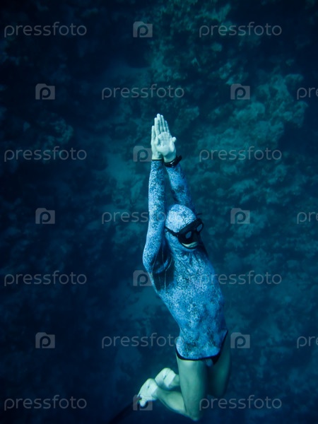 Дайвер, поднимающийся из глубины