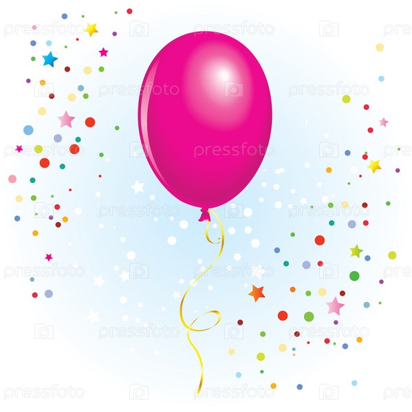 Розовый воздушный шар на фоне из разноцветного конфетти