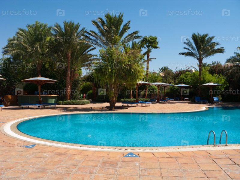 Общий вид бассейна при отеле в Египте