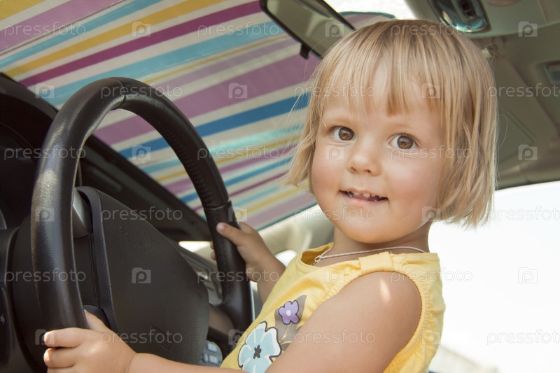 Девочка, сидящая за рулем автомобиля