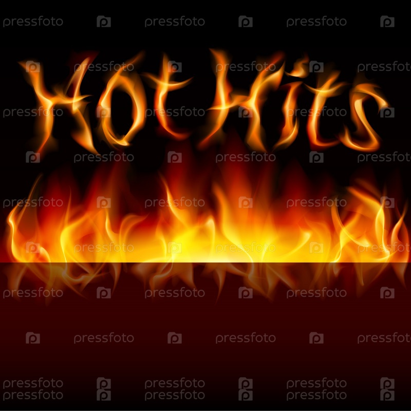 Слова 'Hot Hits' на фоне горящего пламени
