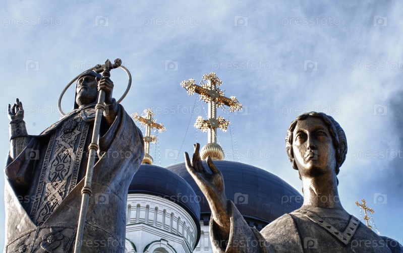 Статуи святых на фоне церкви
