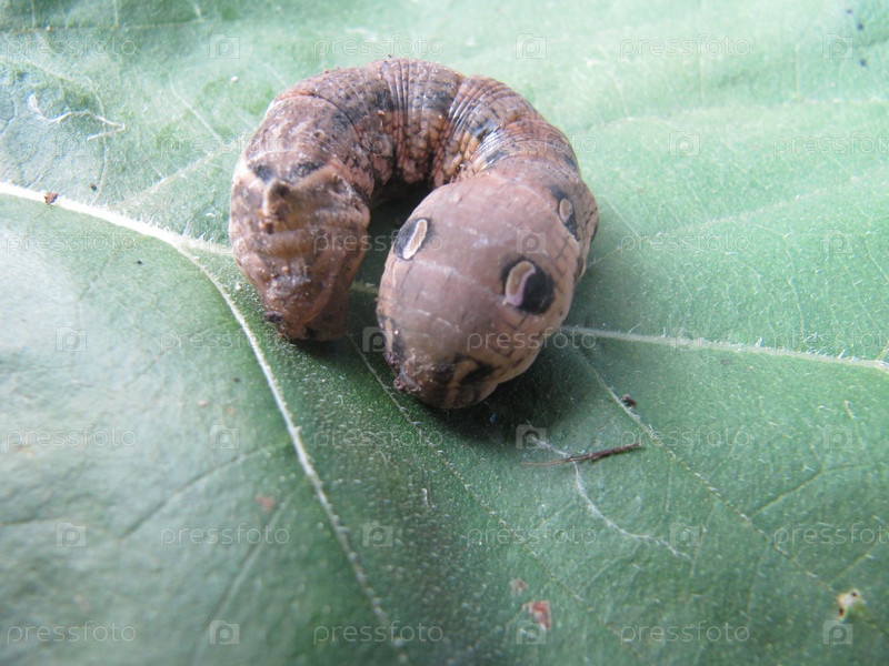 Гусеница на зеленом листе