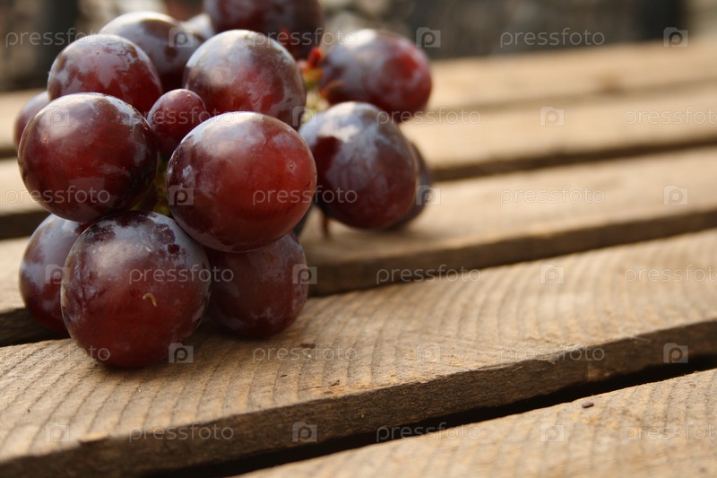 Гроздь красного винограда на скамье