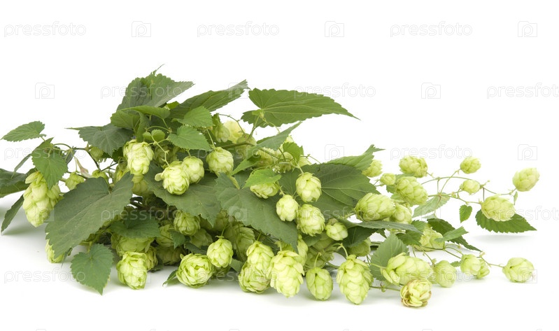 Шишки хмеля на белом фоне