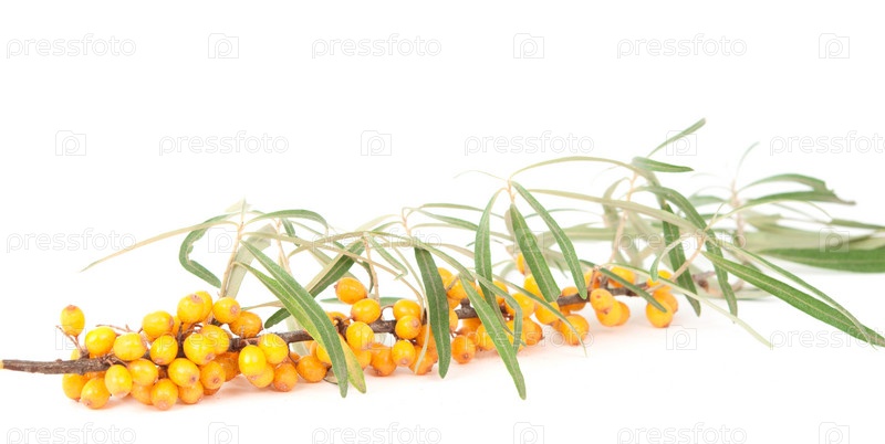Ветка облепихи на белом фоне
