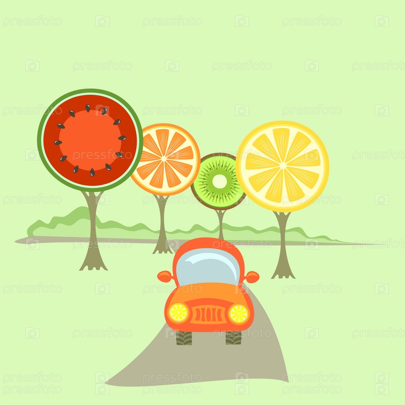 Автомобиль в фруктовом саду