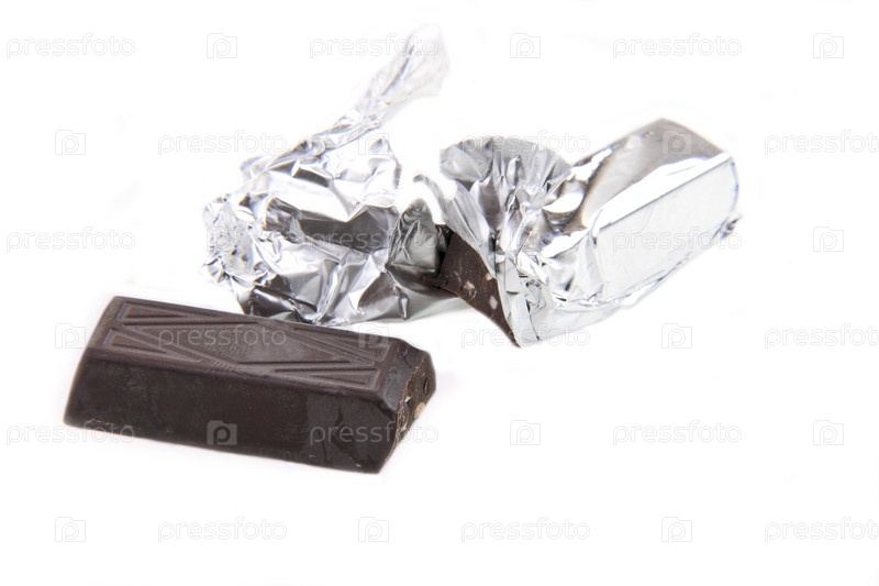 Кусочек шоколада в разорванной фольге