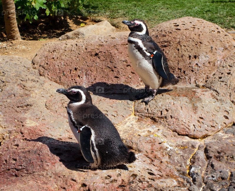 Два пингвина Гумбольдта принимают солнечные ванны в зоопарке