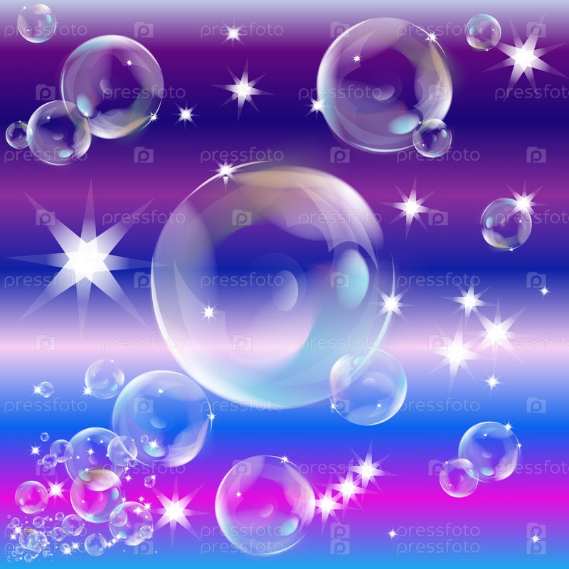 Мыльные пузыри на цветном абстрактном фоне