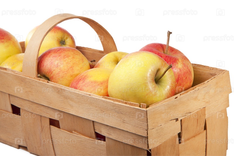 Корзина с яблоками на белом фоне