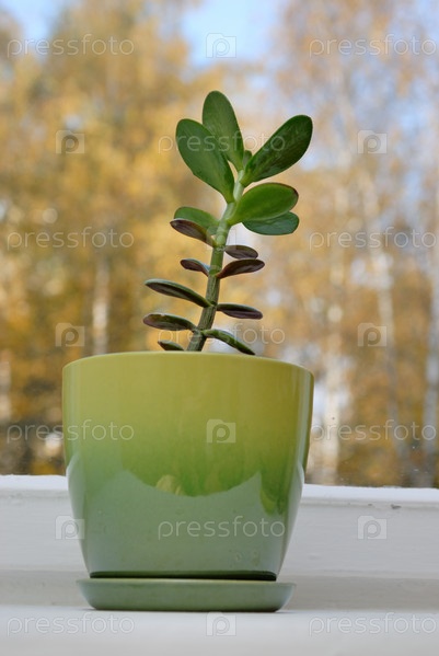 Денежное дерево Jade на подоконнике