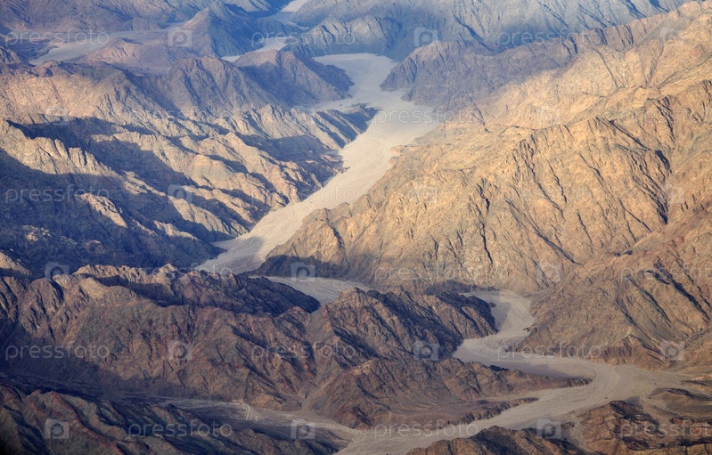 Вид с воздуха на горы и песчаные плато. Египет