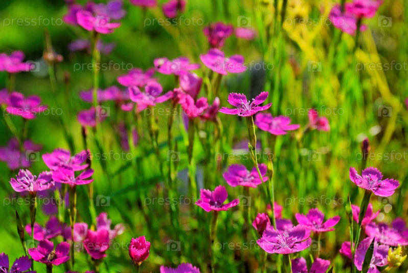 Мелкие розовые цветы дикой гвоздики в качестве фона