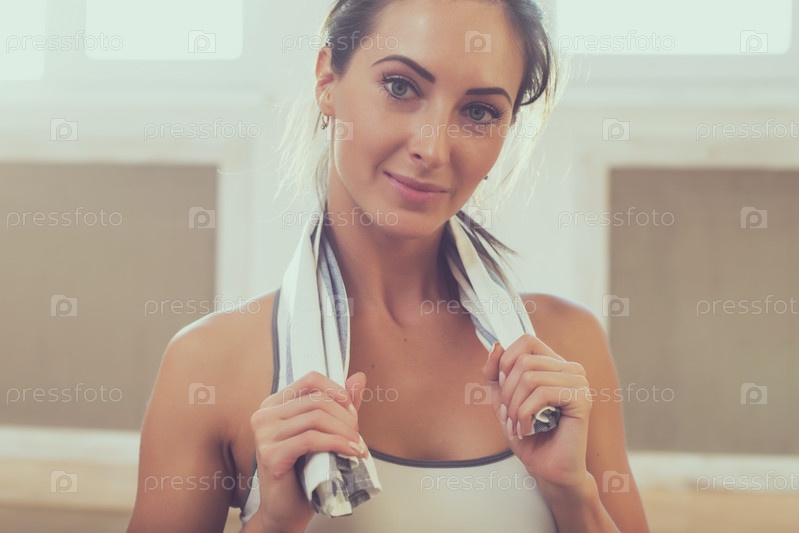 Девушка в зале занимается йогой
