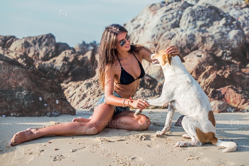 Девушка на пляже с собакой