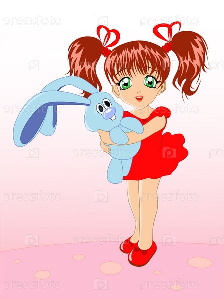 Маленькая девочка с игрушка кролик
