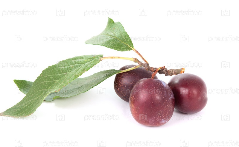 Три сливы на белом фоне