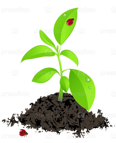 Молодые зеленые растения и Божья коровка