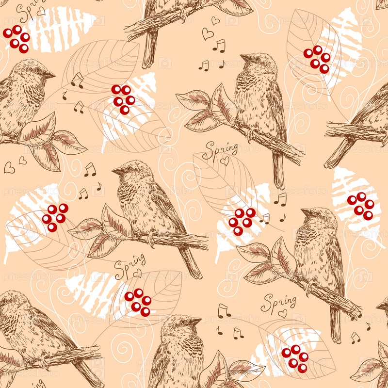 Винтажные бесшовный паттерн с воробьи