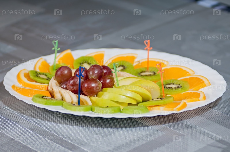 Ломтиками киви банан оранжевый яблок и винограда