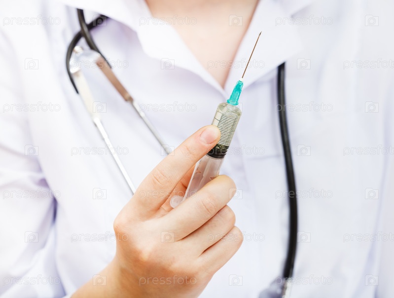 Врач держит шприц