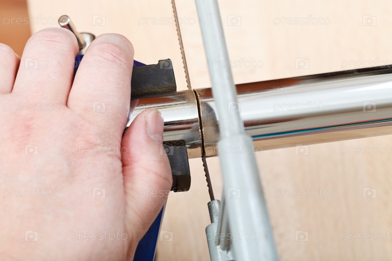 Сантехник разрезает водосточную трубу