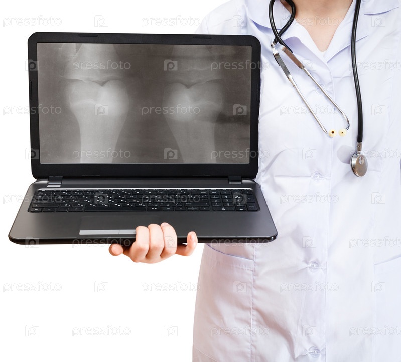 Медсестра держит ноутбук