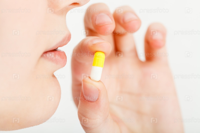 Женщина принимает пилюлю