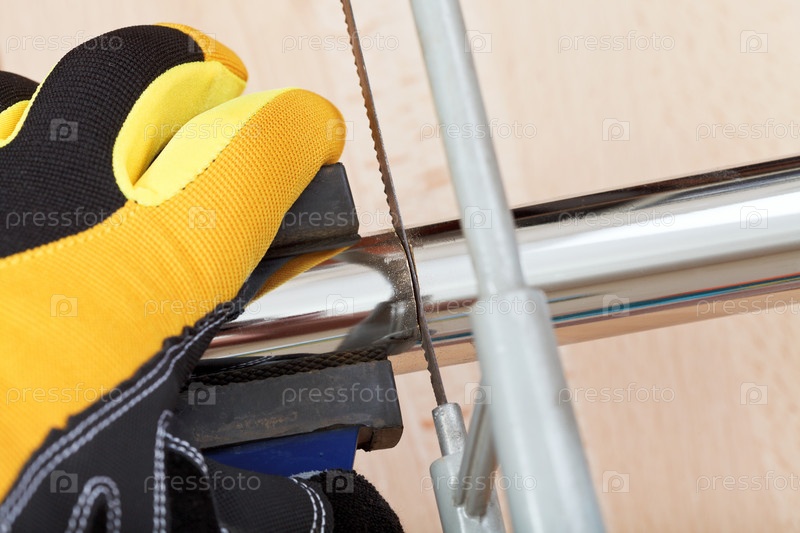 Сантехник разрезает водосточную трубу