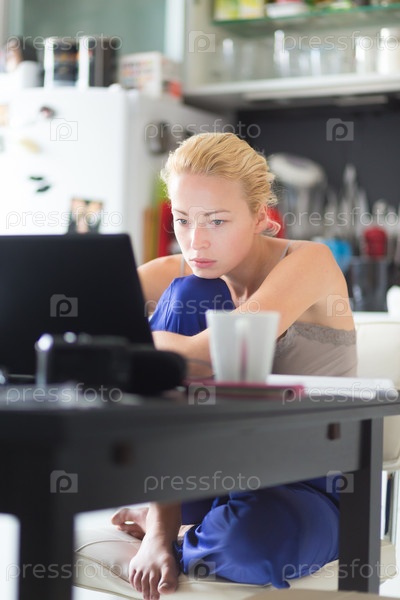 Женщина с ноутбуком на кухне