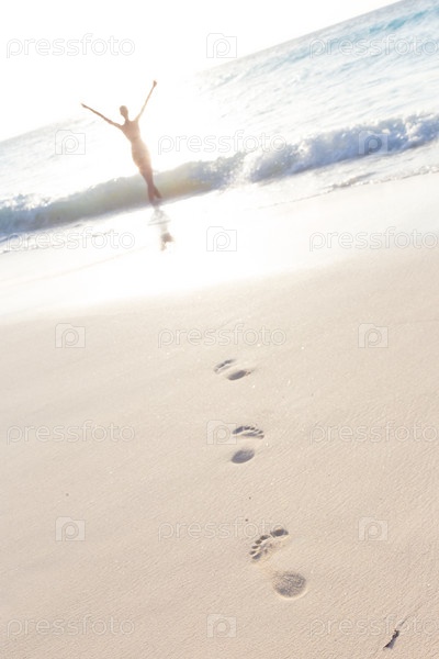 Девушка бежит по берегу моря