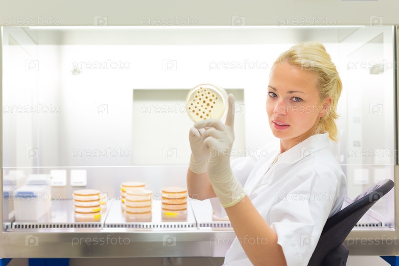 Ученый наблюдает за чашкой Петри
