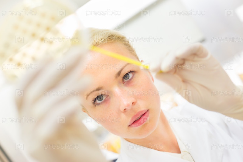 Ученый наблюдает за чашкой Петри
