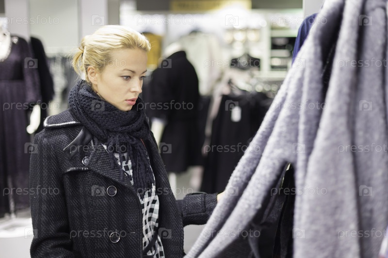 Женщина покупает одежду в магазине