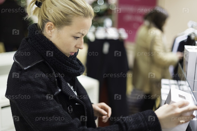 Красивая дама на шоппинге в магазине нижнего белья