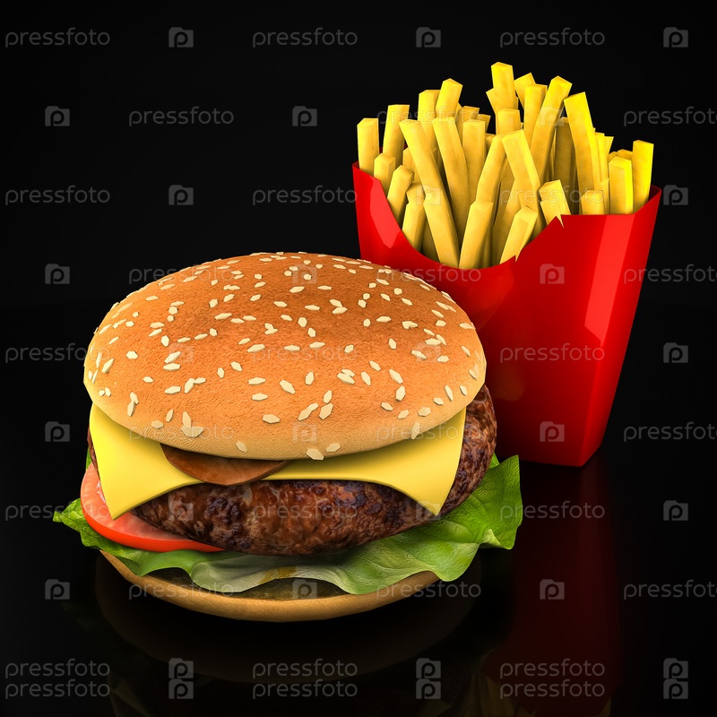Гамбургер и картофель фри