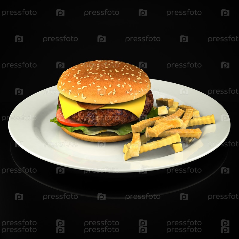 Гамбургер и картофель фри