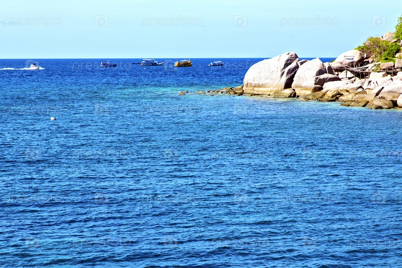 Лодки у берега в Таиланде Тао Бэй, воды Южно-Китайского моря