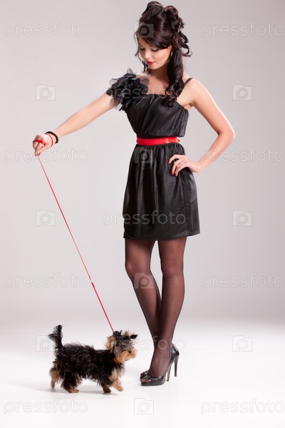 Молодая женщина с маленькой собачкой