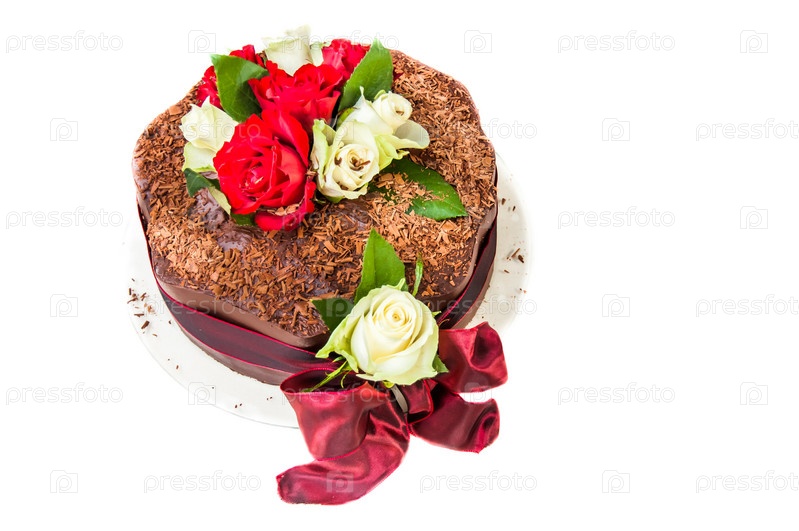 Шоколадный торт с розами