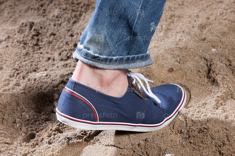 Нога человека и его след на песке