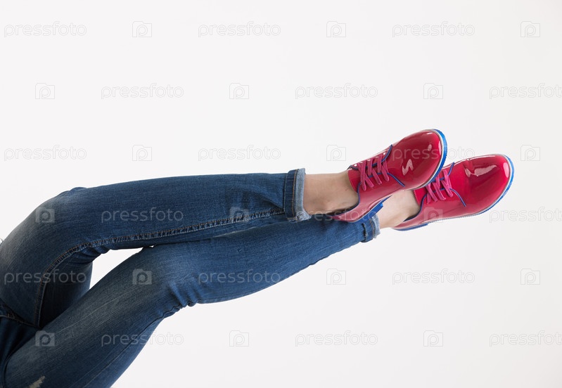 Женские ноги в красных туфлях