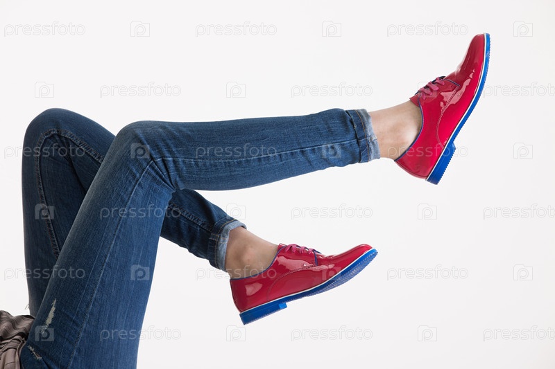 Женские ноги в красных туфлях