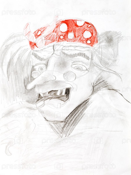 Детский рисунок - старая женщина в красной шляпе