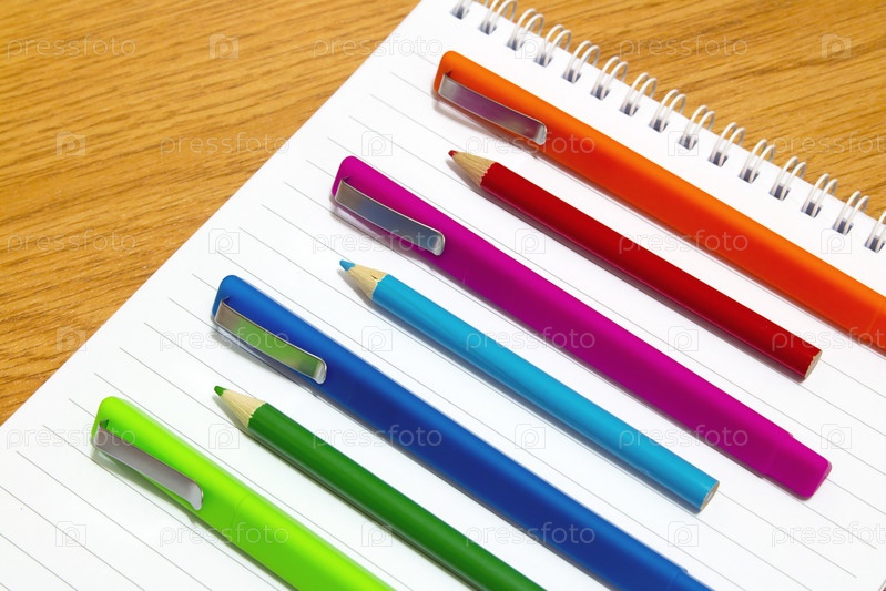 Цветные ручки и карандаши на блокноте