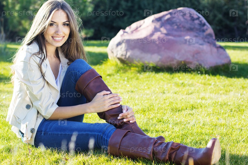 Молодая красивая девушка на зеленой траве