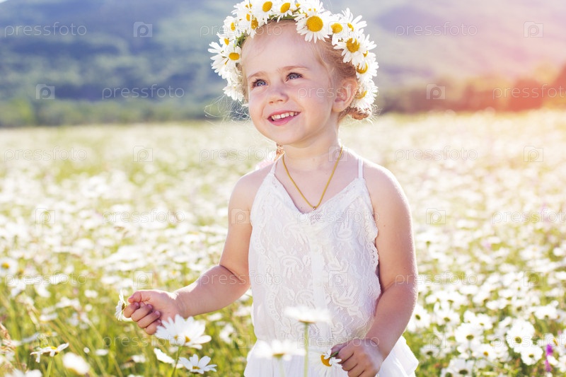 Маленькая девушка с венком из ромашки